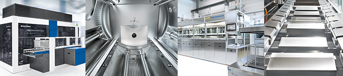 Adapted to the specific requirements and applications (e.g. manufacturing level, type of contamination, cleanliness demands, throughput, weight), different systems are available for batch cleaning with water-based media and environmentally-freindly solvents.