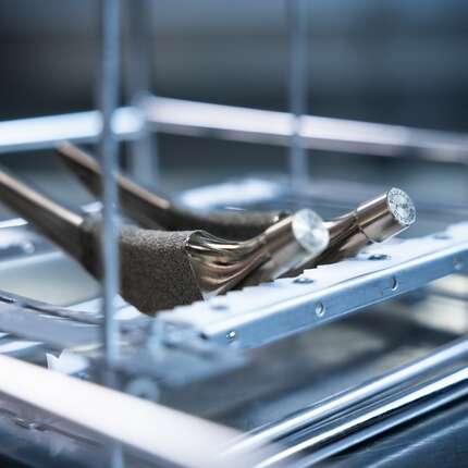 Single-chamber cleaning systems using aqueous and solvent-based solutions reliably clean medical components after CNC machining—even in capillaries, blind holes, and complex geometries, thanks to vacuum technology.