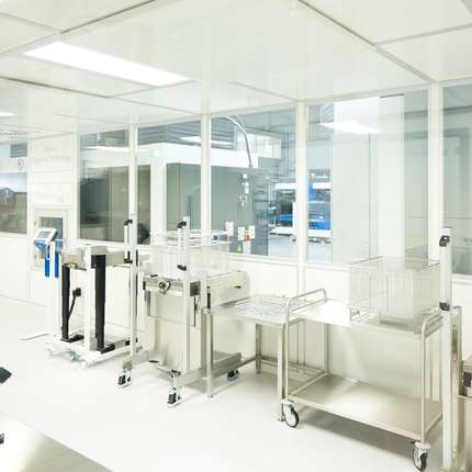 Connected to the clean room are high-purity aqueous and solvent-based chamber systems as well as multi-bath ultrasonic fine cleaning systems. Different ultrasonic frequencies, PPC (Pulsated Pressure Cleaning), ultrasonic+, spraying, injection flood washing, parts movements like oscillation, swiveling or rotation can be tested. In addition, alkaline, acidic and neutral cleaning chemicals as well as passivation can be tested under real conditions. A range of different drying methods like warm air, vacuum and infrared are available as well. All machines are equipped with HEPA Filters.