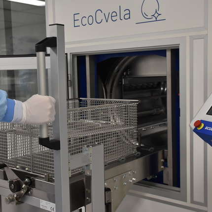The High Purity Test Center has two cleaning areas of different cleanliness classes. The first area is a white room to which a solvent and an aqueous chamber system are connected. In this area, components with medium to high cleanliness requirements are cleaned efficiently. The second area is housed in a validated ISO 7 class cleanroom. This area is used for cleaning trials of components with the highest cleanliness requirements.